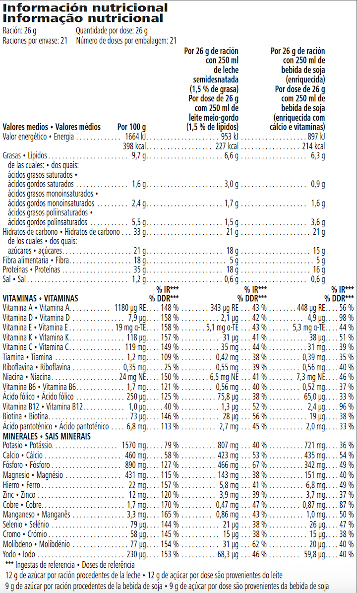 **Para usarse como sustitutivo de comida para el control del peso se deben seguir las instrucciones de la etiqueta.