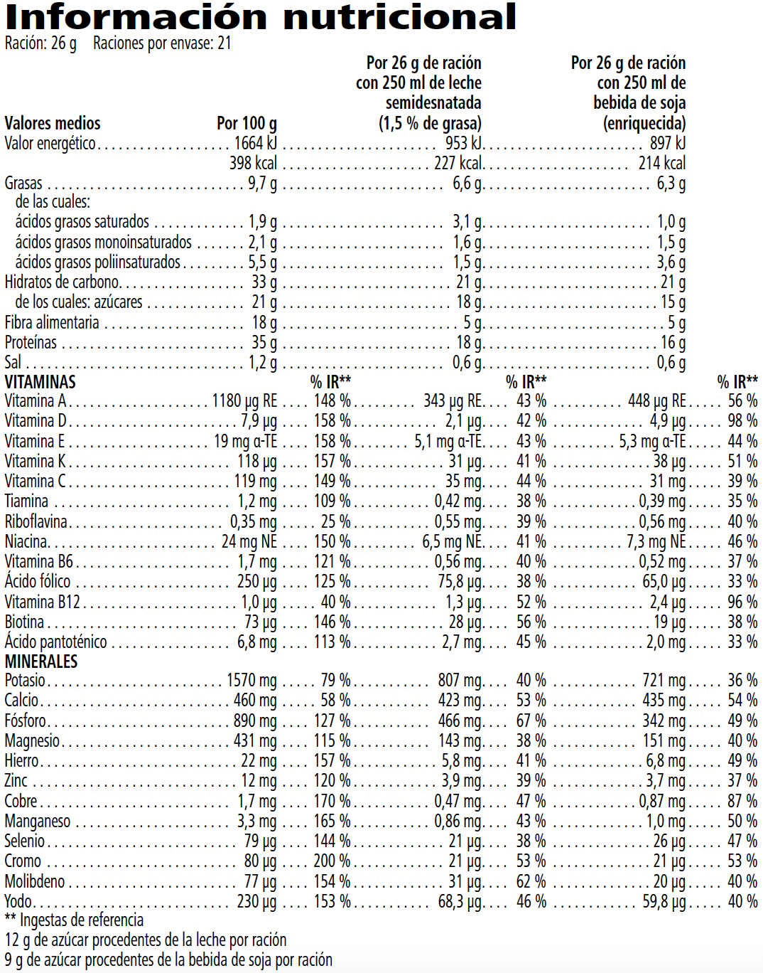 *Preparado con 250 ml de leche semidesnatada (1,5 % de materia grasa).