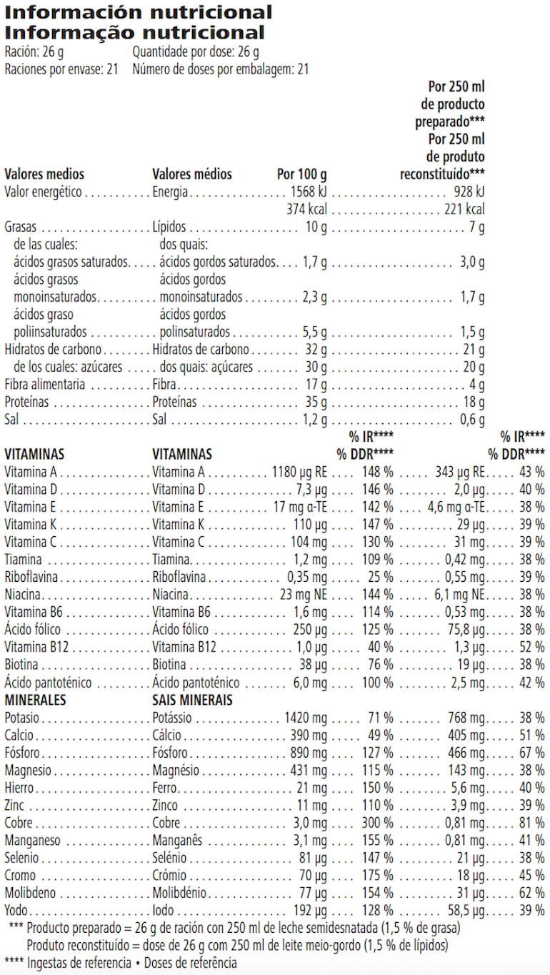 *Preparado con 250 ml de leche semidesnatada (1,5 % de materia grasa).