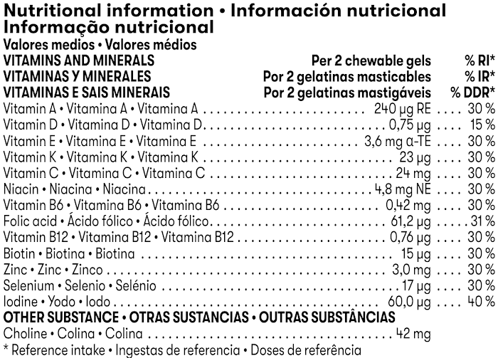 *Alto contenido en vitamina D para el crecimiento y desarrollo normal de los huesos en condiciones normales y al funcionamiento normal del sistema inmunitario en los niños. Contiene yodo para apoyar el crecimiento normal de los niños.
